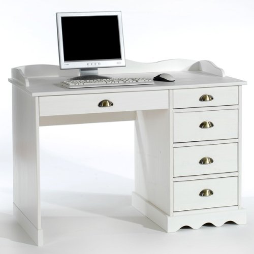 Bureau COLETTE, lasuré blanc SixBros. Bureau Informatique - très brillant blanc - S-202A/732 Bureau enfant en pin lasuré blanc Bureau COLETTE avec corniche sur