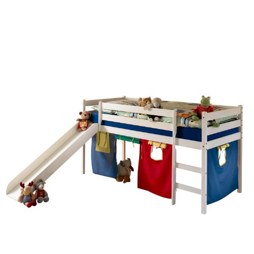 1 annonce pour Lit Surélevé/Mi-Hauteur Lars Chambre Enfant Blanc, Toboggan / Rideaux Bleu - Rouge - Vert Chambre Enfant Lasuré Blanc, Toboggan