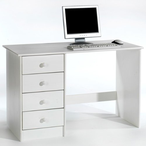 Bureau Enfant Arne Lasuré Blanc 4 Tiroirs pas cher