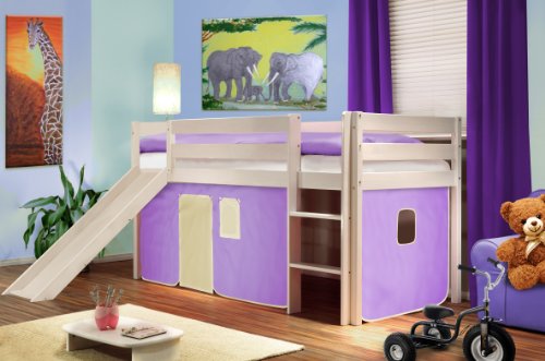 Achats meilleures vacances est venu. Acheter un Lit surélevé d'enfant bois de pin massif blanc - violet/beige - SHB/07/1034 en ligne avec le meilleur