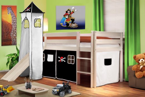 Comparer les prix pour Sixbros SHB 03 1032 - Lit surélevé d'enfant avec tour et toboggan bois de pin massif blanc - Pirat noir/blanc- Lits / Matelas. Voir l