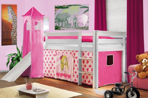 Lit surélevé denfant avec tour et toboggan bois de pin massif blanc Rose SHB/15/1032 Pour les utilisateurs de lInternet, achats en ligne nest pas
