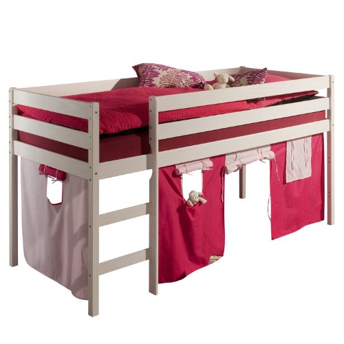 Avis sur "Lit Surélevé / Mi - Hauteur Lars Chambre Enfant Lasuré Blanc, Toboggan / Rideaux Bleu - Rouge Avec rideaux/toboggan / Sans sommiers / Sans matelas