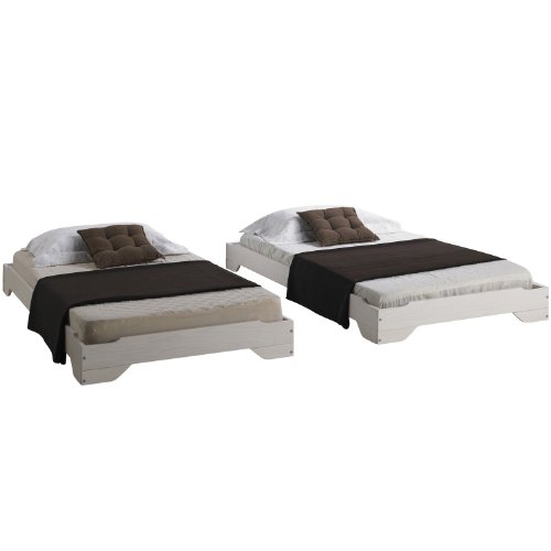 Lits superposables en pin lasuré blanc Le lot est constitué de 2 cadres de lit. Pin massif; Lasuré blanc (la madrure du bois reste visible)