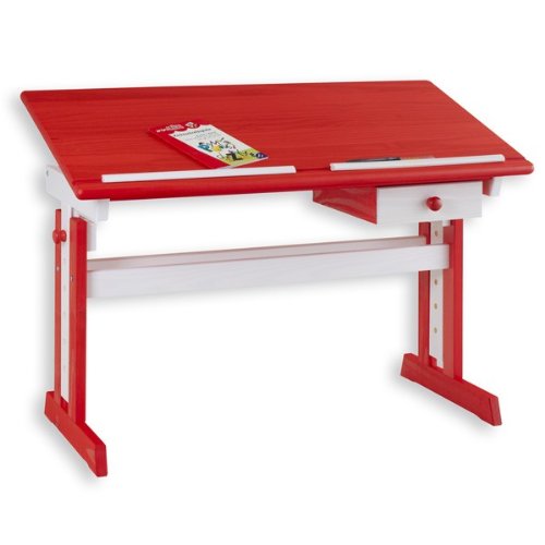 Bureau enfant FLEXY Rouge/blanc, réglable en hauteur et plateau inclinable - bureau enfant Description: Pin massif lasuré rouge/blanc (la madrure du bois reste