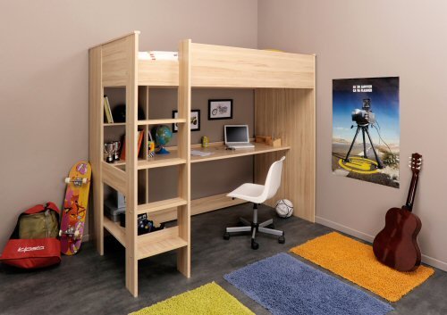 Lit mezzanine 90 x 200 cm en melamine Dimensions (lxHxP) : 205,6 x 179,8 x 108,3 cm Poids net : 112 kg Coloris : sycomore A monter soi-même