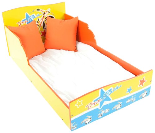 FK Automotive ABKM012 Lit pour enfant avec motifs vélo Rouge/jaune/bleu. Lit d'enfant génial avec motif vélo - le lit optimal pour les as du sport.
